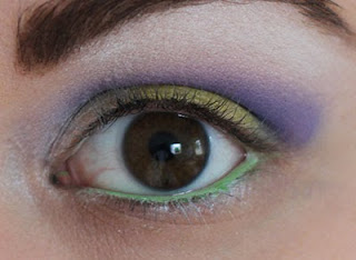6. Levitä valkoisen kajalin päälle varovasti kirkkaan vihreää luomiväriä.
