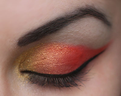 2. Apply a shimmery red color from the outer corner